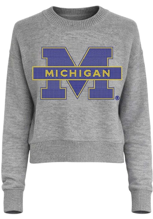 Prepare for an unforgettable game day experience with the Michigan WolverinesWomens Grey Block Crystal Sweater. This Wolverines Long Sleeve Top features a crystal rhinestone embellishments. Stay warm and comfortable throughout the event with this Womens Michigan Wolverines Sweater.