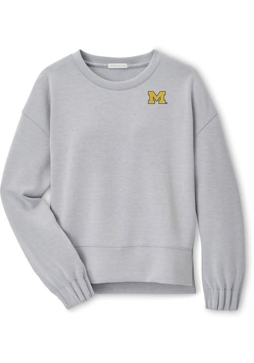 Gear up for the ultimate game day experience with this remarkable Michigan WolverinesWomens Grey Flora Knit Crew Sweatshirt! Designed with the true fan in mind, this Wolverines Long Sleeve Sweatshirt features a screen print team graphic. Stay warm and comfortable with this Womens Michigan Wolverines Crew Sweatshirt.