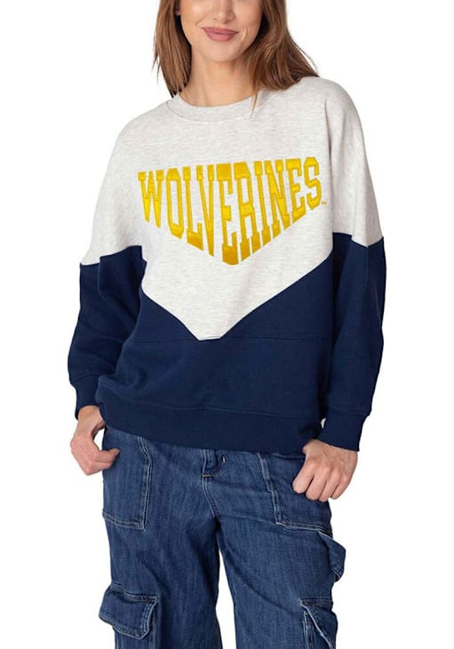 Gear up for the ultimate game day experience with this remarkable Michigan WolverinesWomens Grey Heritage Crew Sweatshirt! Designed with the true fan in mind, this Wolverines Long Sleeve Sweatshirt features a satin applique and embroidered team name on center chest. Stay warm and comfortable with this Womens Michigan Wolverines Crew Sweatshirt.