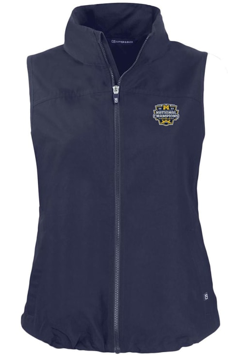 Gear up for the upcoming tailgate with the ultimate Michigan Wolverines Womens Blue Vest. Stay warm in this Michigan 2023 College Football National Champions Charter Sleeveless Jacket, which features a wind and water resistance.