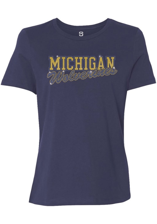 Michigan Wolverines Blue Summit Sportswear Bling Script Short Sleeve T-Shirt