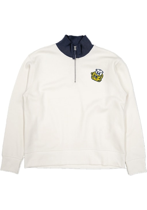 Embrace the warmth and showcase your Wolverines pride with our Michigan Wolverines Long Sleeve Qtr Zip. This Womens Ivory Cloud Fleece Long Sleeve Pullover offers a embroidered for the perfect combination of comfort and style. Elevate your everyday look with this must-have Michigan Wolverines Long Sleeve Qtr Zip.