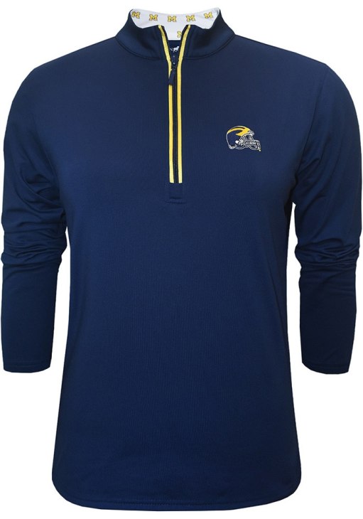 Embrace your Wolverines spirit with pride in this Michigan Wolverines Long Sleeve Qtr Zip. This Womens Navy Blue Custom Trimmed Long Sleeve Pullover showcases a embroidered team logo. You'll want to wear this Michigan Wolverines Long Sleeve Qtr Zip every day.