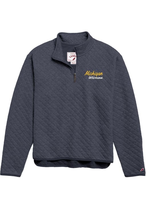 Embrace the warmth and showcase your Wolverines pride with our Michigan Wolverines Long Sleeve Qtr Zip. This Womens Navy Blue Highland Long Sleeve Pullover offers a embroidered team logo for the perfect combination of comfort and style. Elevate your everyday look with this must-have Michigan Wolverines Long Sleeve Qtr Zip.