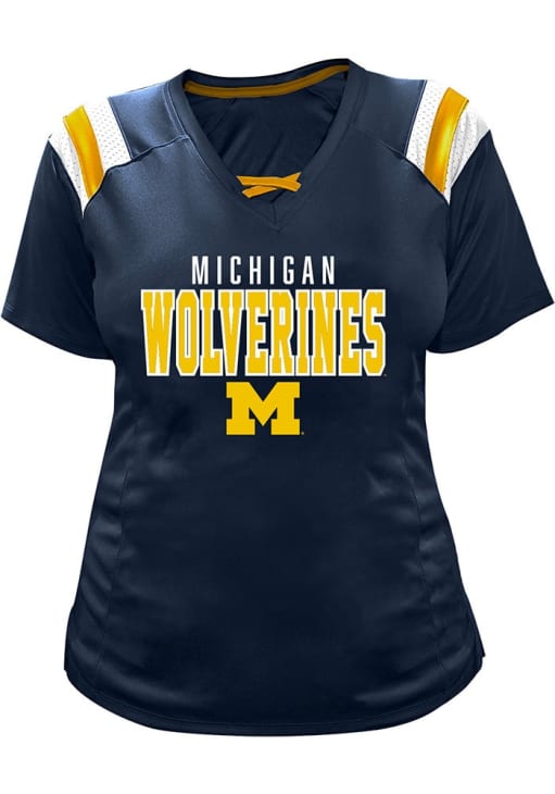 Display your team spirit with this remarkable Michigan Wolverines Navy Blue Lace Up Short Sleeve T-Shirt! The Michigan Short Sleeve Tee showcases a screenprint team namd and team logo on center front that truly sets it apart. Stand out from the crowd and proudly declare your allegiance to the Wolverines with this exceptional Navy Blue Michigan T-Shirt. Go Michigan!