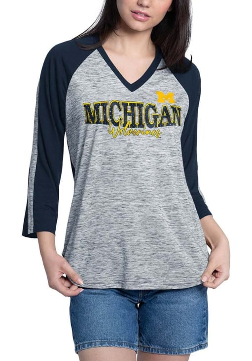 Show your Michigan Wolverines spirit in this Michigan Navy Blue T-Shirt! This Michigan Speed Training Long Sleeve T-Shirt makes a great layer for cooler nights cheering on the Wolverines. Featuring a screen print with glitter and tonal rhinestone team name and logo on center chest, this Michigan Wolverines Long Sleeve LS Tee is an essential addition for every fan. Go Michigan!