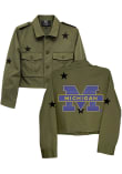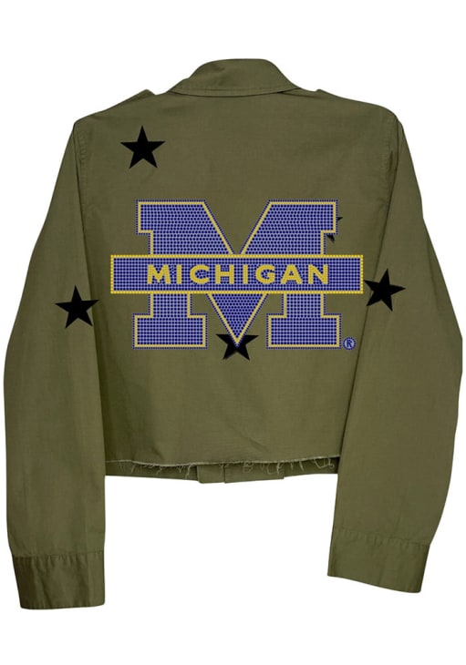 Stay warm and cozy with this Michigan Wolverines Womens Olive Block Shacket Light Weight Jacket! Cheer on the Wolverines in this Michigan Light Weight Jacket. With a crystal rhinestone embellishments, you won't want to be caught without this Light Weight Jacket on gameday.