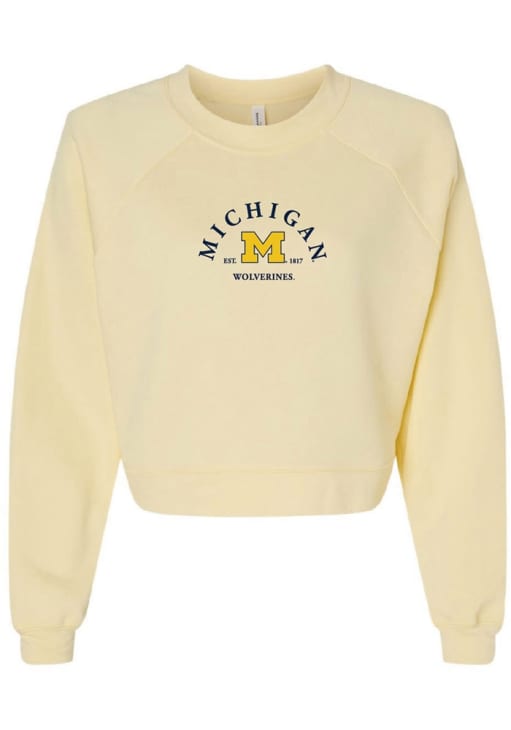 Gear up for the ultimate game day experience with this remarkable Michigan WolverinesWomens White Arch Crew Sweatshirt! Designed with the true fan in mind, this Wolverines Long Sleeve Sweatshirt features a screen print team name and logo on left chest. Stay warm and comfortable with this Womens Michigan Wolverines Crew Sweatshirt.