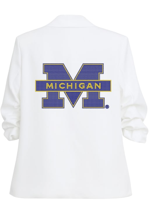 Stay warm and comfortable with this Michigan Wolverines Womens White Block Ruched Medium Weight Jacket! Cheer on the Wolverines in this Michigan Medium Weight Jacket. With a crystal rhinestone embellishments, you won't want to be caught without this Medium Weight Jacket on gameday.