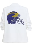 Stay warm and comfortable with this Michigan Wolverines Womens White Helmet Ruched Medium Weight Jacket! Cheer on the Wolverines in this Michigan Medium Weight Jacket. With a crystal rhinestone embellishments, you won't want to be caught without this Medium Weight Jacket on gameday.