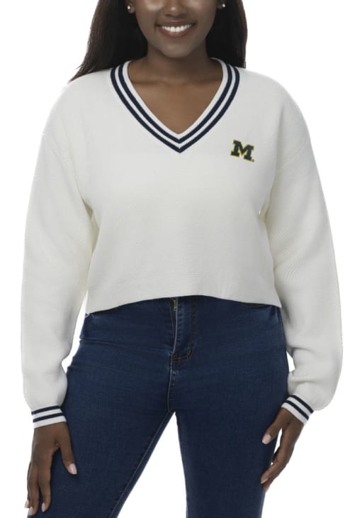 Prepare for an unforgettable game day experience with the Michigan WolverinesWomens White Victory Sweater. This Wolverines Long Sleeve Top features a embroidered team logo on left chest. Stay warm and comfortable throughout the event with this Womens Michigan Wolverines Sweater.