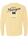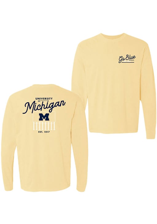 Show your Michigan Wolverines spirit in this Michigan Yellow T-Shirt! This Michigan Michigan Pillars Long Sleeve T-Shirt makes a great layer for cooler nights cheering on the Wolverines. Featuring a screen print team name on left chest and screen print team name and logo on center back, this Michigan Wolverines Long Sleeve LS Tee is an essential addition for every fan. Go Michigan!