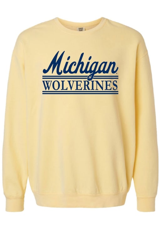 Gear up for the ultimate game day experience with this remarkable Michigan WolverinesWomens Yellow Underlined Crew Sweatshirt! Designed with the true fan in mind, this Wolverines Long Sleeve Sweatshirt features a screen print team name on center chest. Stay warm and comfortable with this Womens Michigan Wolverines Crew Sweatshirt.