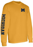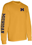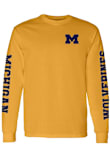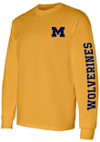 Show your Michigan Wolverines spirit in this Michigan Yellow T Shirt! This Michigan Double Sleeve Print Long Sleeve T Shirt makes a great layer for cooler nights cheering on the Wolverines. Featuring a screen print team graphic across chest, this Michigan Wolverines Long Sleeve Tee is an essential addition for every fan. Go Michigan!
