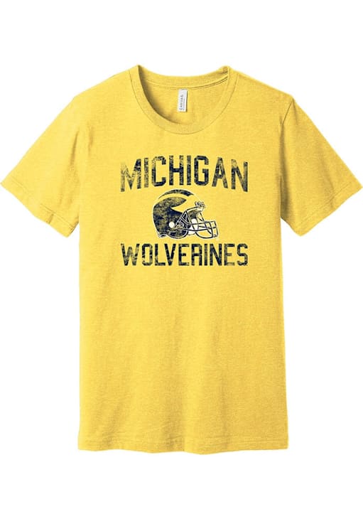 Display your team spirit with this remarkable Michigan Wolverines Yellow Faded Football Helmet Short Sleeve T Shirt! The Michigan Short Sleeve Tee showcases a screen print team graphic across chest that truly sets it apart. Stand out from the crowd and proudly declare your allegiance to the Wolverines with this exceptional Yellow Michigan T Shirt. Go Michigan!