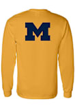 Show your Michigan Wolverines spirit in this Michigan Yellow T Shirt! This Michigan Front Back Print Long Sleeve T Shirt makes a great layer for cooler nights cheering on the Wolverines. Featuring a screen print team graphic across chest, this Michigan Wolverines Long Sleeve Tee is an essential addition for every fan. Go Michigan!