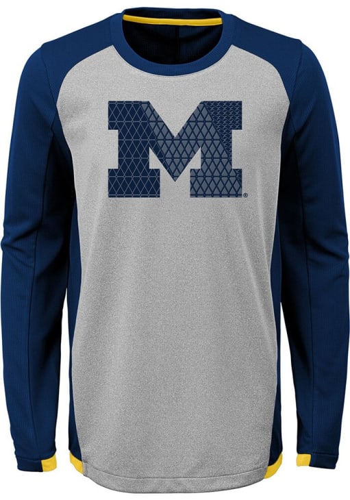 Step-up your style in this Youth Grey Wolverines Long Sleeve T-Shirt. This Michigan Long Sleeve Tee is a great way to show off your team spirit. It features a rubber screen print on center chest with clear gel overlay that is perfect to wear whenever you are on the move.