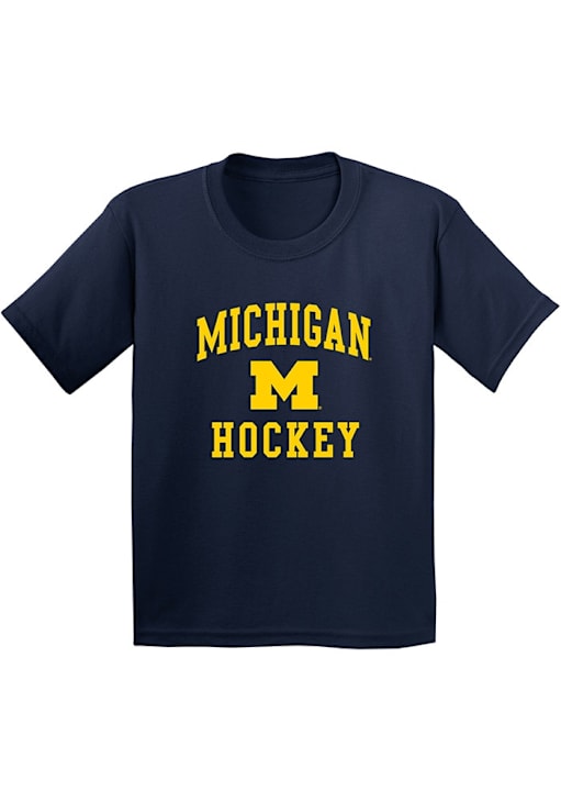 Your future Michigan Wolverines will be gameday ready in this Navy BlueYouth Short Sleeve Tee. This Arch Logo Hockey T-Shirt features a screen print team graphic.