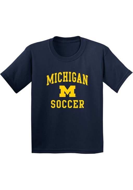 Product Details Product Details Your future Michigan Wolverines will be gameday ready in this Navy BlueYouth Short Sleeve Tee. This Arch Logo Soccer T-Shirt features a screen print team graphic.