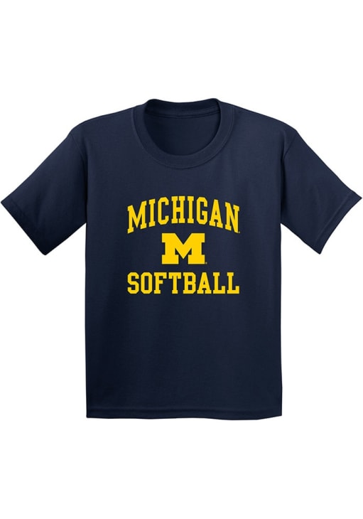 Your future Michigan Wolverines will be gameday ready in this Navy BlueYouth Short Sleeve Tee. This Arch Logo Softball T-Shirt features a screen print team graphic.