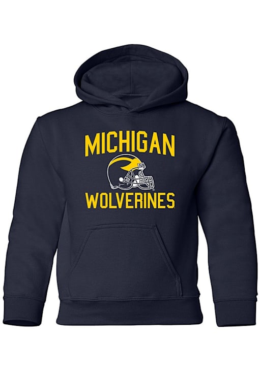 Go to gamedays in style in this Youth Navy Blue Michigan Wolverines Team Helmet Hooded Sweatshirt! This Wolverines Hoodie features a screen print graphic that will be sure to keep you warm and cozy.