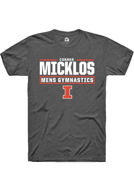 Connor Micklos Dark Grey Illinois Fighting Illini NIL Stacked Box Short Sleeve T Shirt