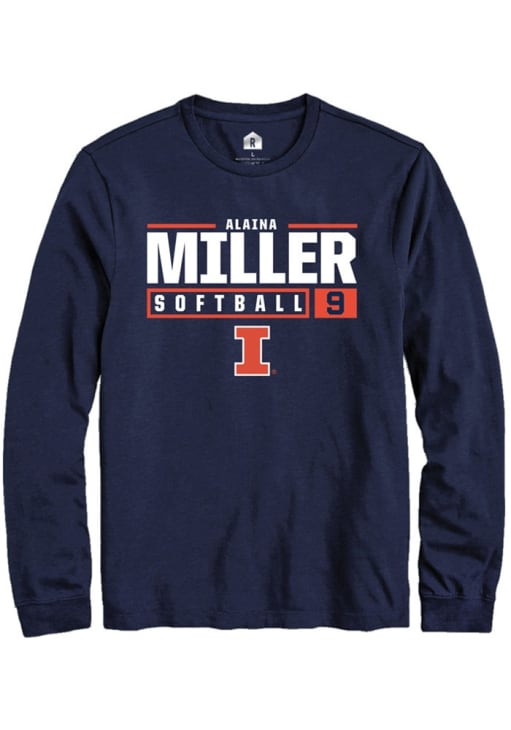 Alaina Miller Rally Mens Navy Blue Illinois Fighting Illini NIL Stacked Box Tee