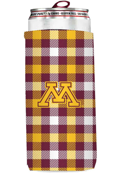 This Minnesota Golden Gophers Coolie is great for keeping your drink cold and showing your Golden Gophers spirit. Cheer on the Golden Gophers with this Coolie, which features a team logo on a plaid slim can coozie.