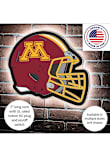 This Minnesota Golden Gophers 19.5x15 Helmet Light Up Sign is great for decorating your home Golden Gophers team spirit. Take your team spirit to the next level with this Sign, which features a official team logo with backlighted faceplate. Fight, Gophers!