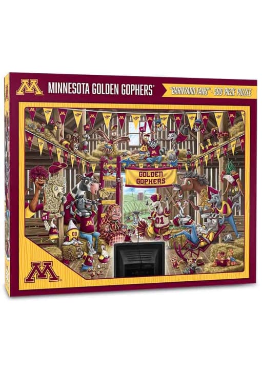 Product Details Product Details Finished puzzle size 18" x 24"500 piecesGreat gift for fans of any ageOfficial team logo and colorsCardboard materialOriginal artwork Officially Licensed Give yourself a challenge putting together this Minnesota Golden Gophers 500pc Barnyard Puzzle. This Puzzle features a 500pc puzzle with team logo and team colors.