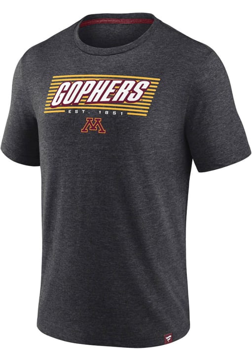 Display your team spirit with this remarkable Minnesota Golden Gophers Charcoal Off Stack Biblend Short Sleeve T Shirt! The Minnesota Short Sleeve Tee showcases a screenprint of team graphic on front chest that truly sets it apart. Stand out from the crowd and proudly declare your allegiance to the Golden Gophers with this exceptional Charcoal Minnesota T Shirt. Fight, Gophers!