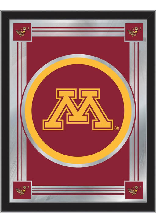 Product Details Product Details Vibrant, full color artwork1/8" glass with Mirrored Accents15" x 26" matt black wood frameSaw-tooth hanger for easy hangingGreat gift for any occasion!USA Officially Licensed This Minnesota Golden Gophers Logo Hanging Back Bar Mirror is a great addition to show your Golden Gophers pride. A great match to the game room bar, this Back Bar Mirror features a team logo that will be sure to draw attention to your fan cave.