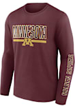 Show your Minnesota Golden Gophers spirit in this Minnesota Maroon T Shirt! This Minnesota Flat Name Long Sleeve T Shirt makes a great layer for cooler nights cheering on the Golden Gophers. Featuring a screen printed team graphic on front chest and mascot name on left sleeve, this Minnesota Golden Gophers Long Sleeve Tee is an essential addition for every fan. Fight, Gophers!