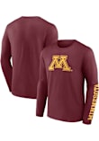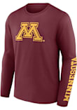 Show your Minnesota Golden Gophers spirit in this Minnesota Maroon T Shirt! This Minnesota Primary Logo Design Long Sleeve T Shirt makes a great layer for cooler nights cheering on the Golden Gophers. Featuring a screenprint team logo on front chest, this Minnesota Golden Gophers Long Sleeve Tee is an essential addition for every fan. Fight, Gophers!