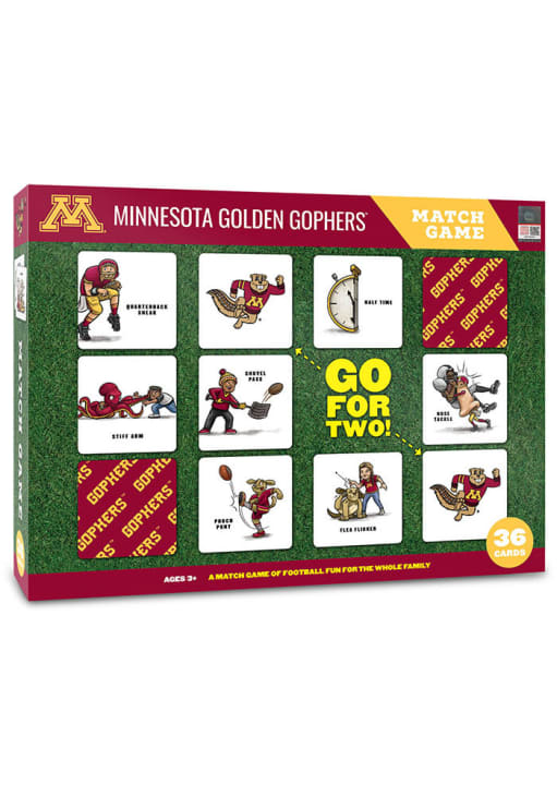 Product Details Product Details 36 2.5" x 2.5 " cardsTeam-specific illustrationsFun for the whole familyFor fans of all ages36 pieces Officially Licensed Have fun and show support for your team with this Minnesota Golden Gophers Memory Match Game. This Game features a illustrations featuring your favorite team for hours of Golden Gophers fun.