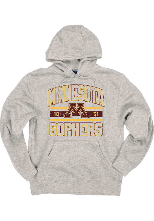 Embrace your Golden Gophers pride and showcase your team spirit with confidence in this Minnesota Golden Gophers Long Sleeve Hoodie! Stay warm and stylish with the Minnesota Mens Grey Arch Logo Hooded Sweatshirt. Designed with screenprint team graphic on front chest, this Golden Gophers Long Sleeve Hoodie is a must-have for dedicated fans.