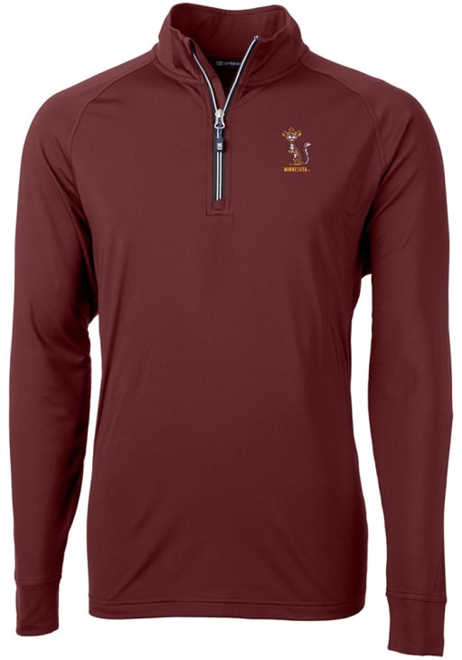 Mens Minnesota Golden Gophers Maroon Cutter and Buck Vault Adapt Eco Knit Qtr Zip Pullover