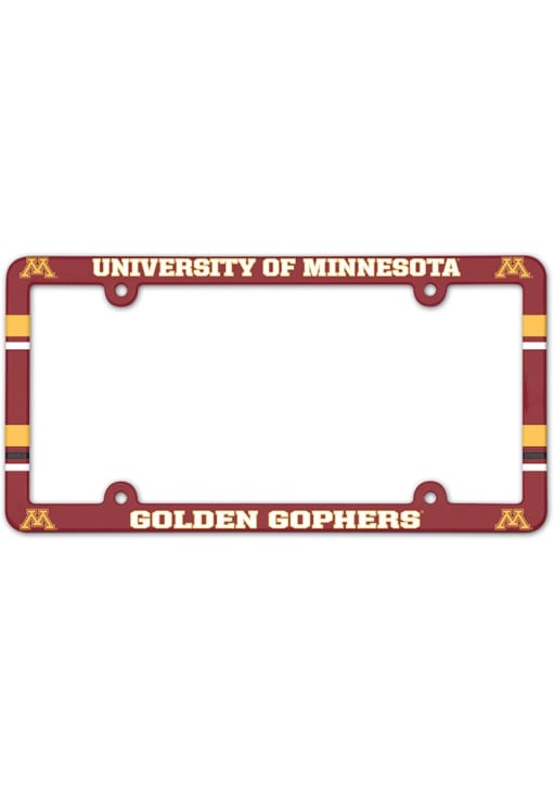 Product Details Product Details Fits any standard car license plate, front or backMolded in durable plasticHigh quality screen printed graphicsPerfect way to take your team pride on the road!PLASTICImported Officially Licensed This Golden Gophers License Plate Holder features a team logo.
