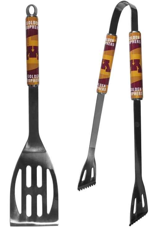 This Minnesota Golden Gophers Tool Set is a great way to show your Golden Gophers pride while grilling at the tailgate. This Tool Set features a steel spatula and tongs that are 14 inches with team graphics in vivid color.