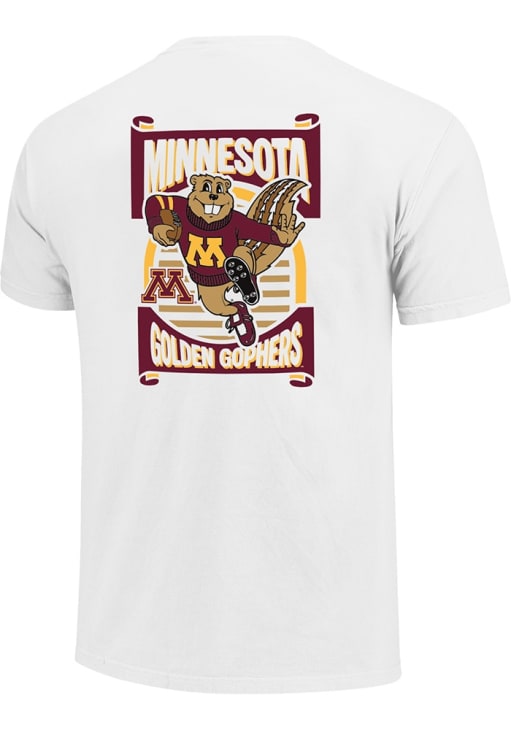 Display your team spirit with this remarkable Minnesota Golden Gophers White Gopher Playing Football Short Sleeve T Shirt! The Minnesota Short Sleeve Tee showcases a Screen Printed Design that truly sets it apart. Stand out from the crowd and proudly declare your allegiance to the Golden Gophers with this exceptional White Minnesota T Shirt. Fight, Gophers!