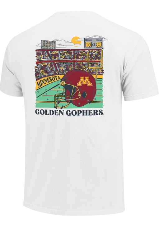 Display your team spirit with this remarkable Minnesota Golden Gophers White Stadium Helmet Short Sleeve T Shirt! The Minnesota Short Sleeve Tee showcases a Screen Printed Design on Front Left Chest and Back that truly sets it apart. Stand out from the crowd and proudly declare your allegiance to the Golden Gophers with this exceptional White Minnesota T Shirt. Fight, Gophers!
