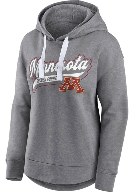 Embrace your Golden Gophers pride and showcase your team spirit with confidence in this Minnesota Golden Gophers Long Sleeve Hoodie! Stay warm and stylish with the Minnesota Womens Grey Classic Hooded Sweatshirt. Designed with screen print team name, this Golden Gophers Long Sleeve Hoodie is a must-have for dedicated fans.