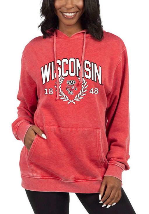 Embrace your Badgers pride and showcase your team spirit with confidence in this Wisconsin Badgers Long Sleeve Hoodie! Stay warm and stylish with the Wisconsin Womens Red Everybody Hooded Sweatshirt. Designed with screen print team name and logo on center chest, this Badgers Long Sleeve Hoodie is a must-have for dedicated fans.