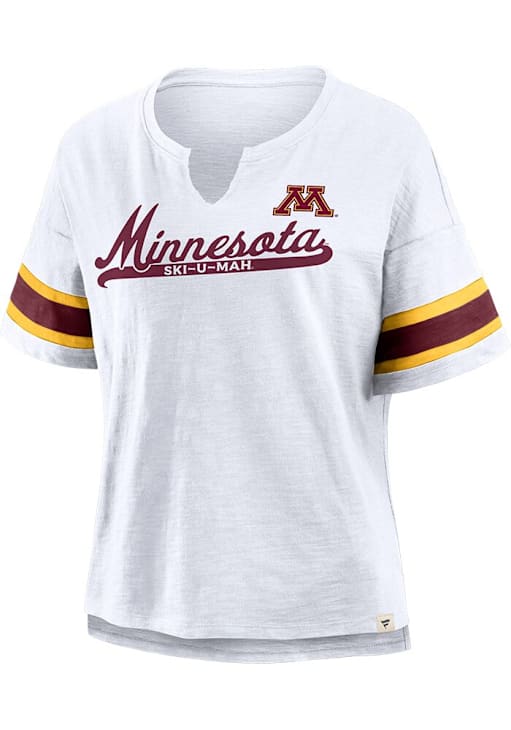 Display your team spirit with this remarkable Minnesota Golden Gophers White Conquer the Game Short Sleeve T-Shirt! The Minnesota Short Sleeve Tee showcases a waterbased screen print team name and team logo on center chest that truly sets it apart. Stand out from the crowd and proudly declare your allegiance to the Golden Gophers with this exceptional White Minnesota T-Shirt. Fight, Gophers!
