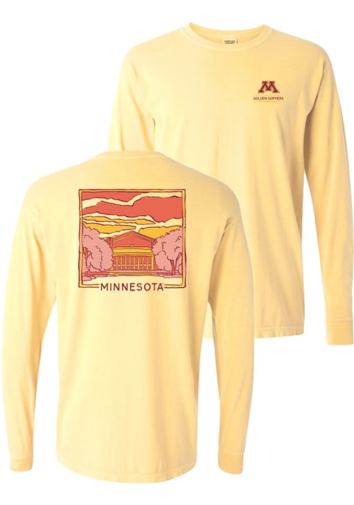 Show your Minnesota Golden Gophers spirit in this Minnesota Yellow T-Shirt! This Minnesota Campus Sky Long Sleeve T-Shirt makes a great layer for cooler nights cheering on the Golden Gophers. Featuring a screen print team logo at left chest with screen print team graphic on center back, this Minnesota Golden Gophers Long Sleeve LS Tee is an essential addition for every fan. Fight, Gophers!
