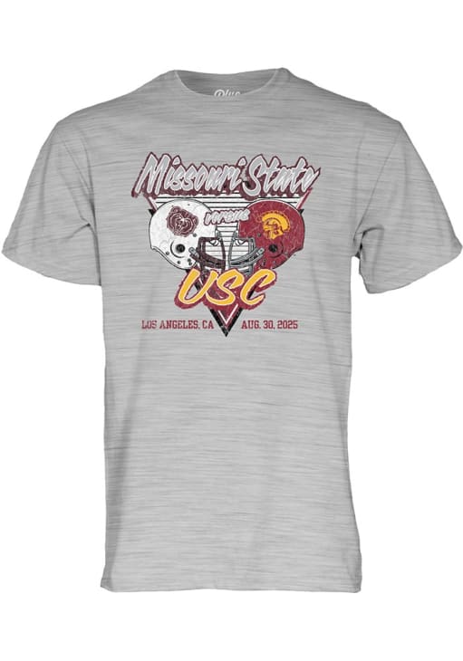 Display your team spirit with this remarkable Missouri State Bears Blue 84 Grey Football Football vs USC Trojans Short Sleeve T Shirt! The MO State Short Sleeve Tee showcases a screen print of team graphic on front chest that truly sets it apart. Stand out from the crowd and proudly declare your allegiance to the Bears with this exceptional Grey MO State T Shirt. Go Bears!