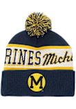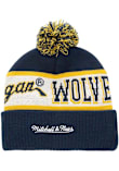 Size Chart for Michigan Wolverines Mitchell and Ness Block Sweep Pom Mens Knit Hat - Blue
