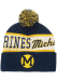 Size Chart for Michigan Wolverines Mitchell and Ness Block Sweep Pom Mens Knit Hat - Blue