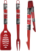 - Grill set includes: spatula with bottle opener and serrated edge, fork and tongs