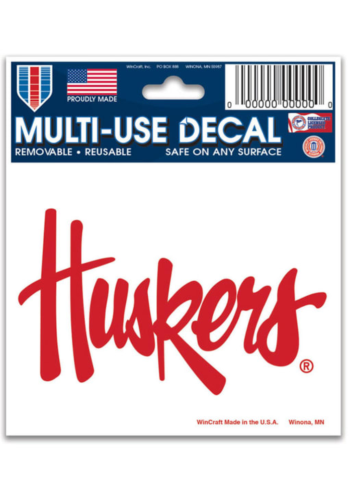 Product Details Product Details 3x4 Multi-UseSticks to indoor and outdoor surfacesRemovable and reusableNo residue left behind when removedVINYLUSA Officially Licensed This Cornhuskers Decal features a team logo in team color.